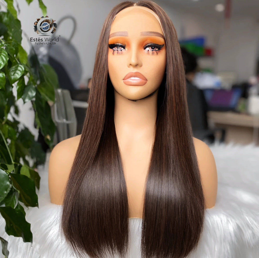 Chocolate Brown Bone Straight Human Hair Wigs, 5x5 Closure Wig 250% Density