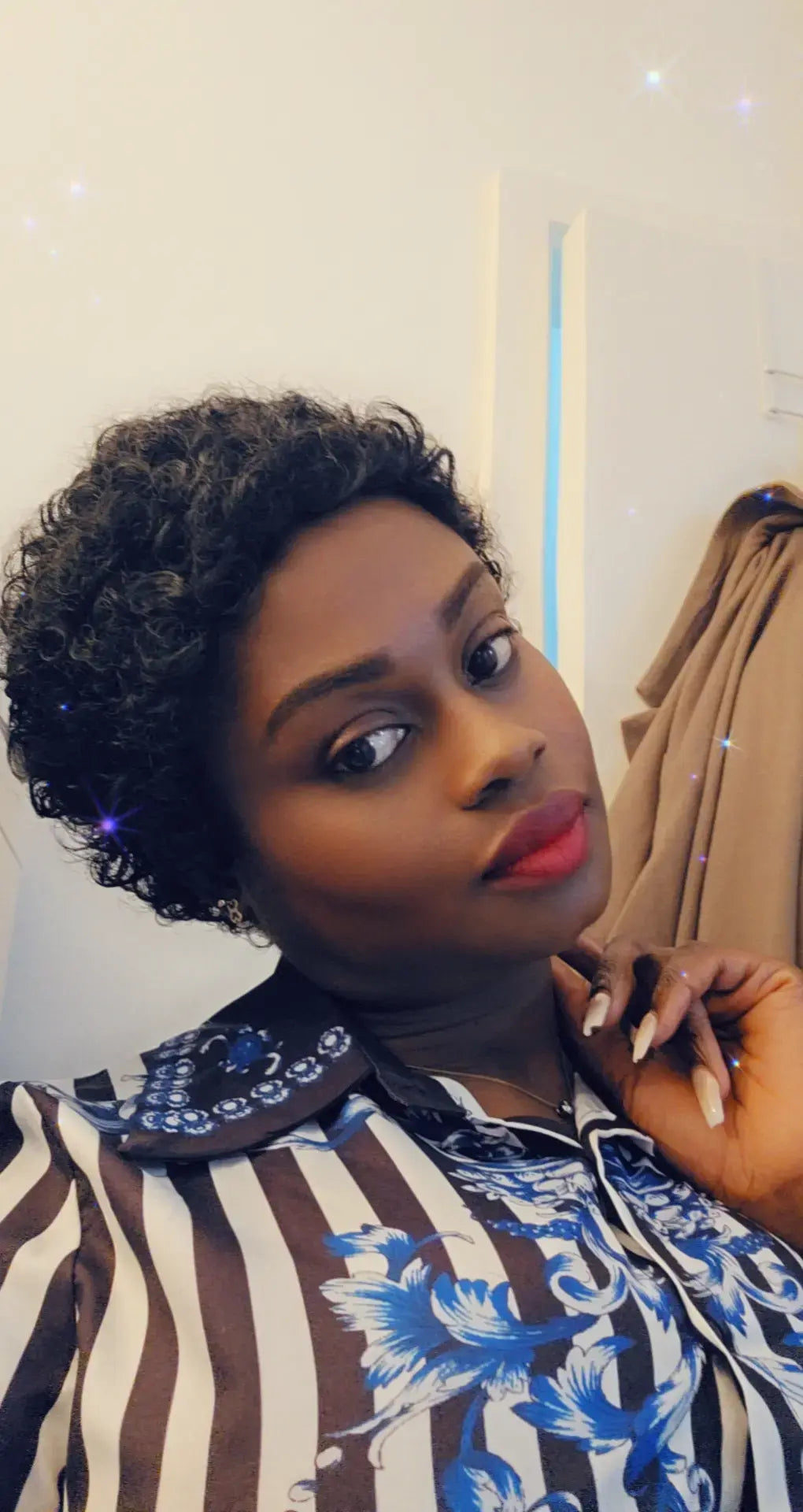 - Chic Curly Style: Short cut with bouncy curls in natural black adds instant volume and flair.